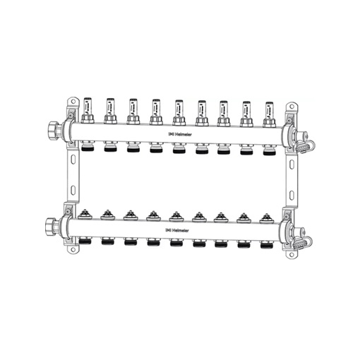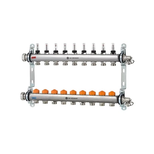 Heimeier Dynacon Eclipse RVS Vloerverwarming Verdeler 9 groeps 1″ met debietmeters 9340-09.800