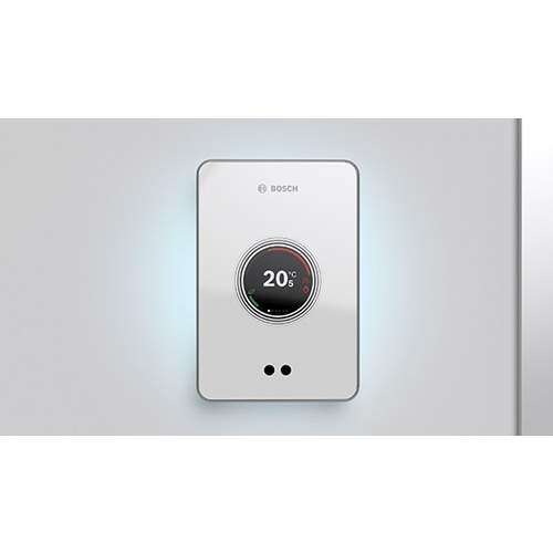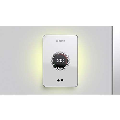 Bosch EasyControl slimme thermostaat, helder wit, (bxd) 103x25mm, 2-draads, communicatieprotocol merkgebonden, bediening op afstand mogelijk, contactuitvoering elektronisch, geschikt voor stadsverwarmingsregel, met aanwezigheidswaarneming, geschikt voor vloerverwarmingsregel
