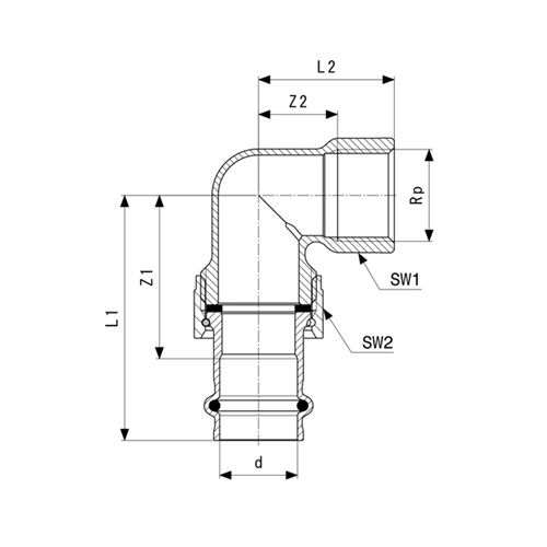 Voor stroming geoptimaliseerd persfittingsysteem van koper (99,9% Cu-DHP), brons of silicium brons voor koperbuizen. Persfitting ter bescherming van het afdichtingselement, uitgerust met cilindrische buisgeleiding. Persfittingen vanaf d64,0 met roestvast stalen snijring voor borging van de mechanische belasting van de verbinding. De perskracht is voor en achter de zitting van het afdichtingselement. Geschikt voor opbouw- en inbouwinstallaties van stijg- en etageleidingen-installaties.