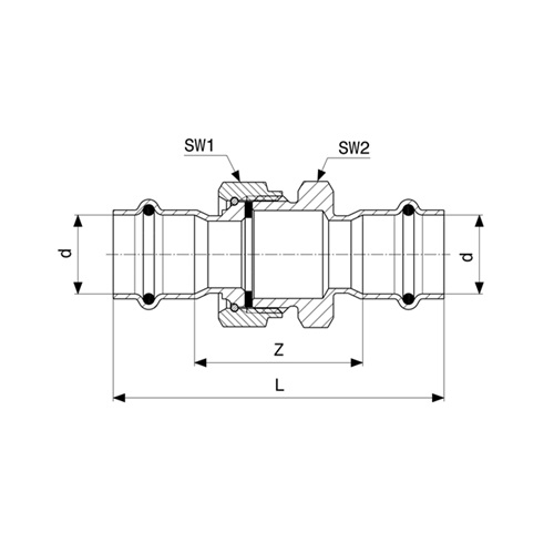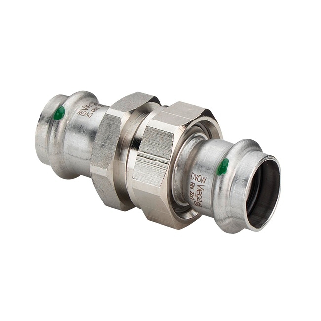 - Omschrijving: Viega Sanpress Inox RVS press 3-delige koppeling 2x pers met SC contour Ø15x15mm
