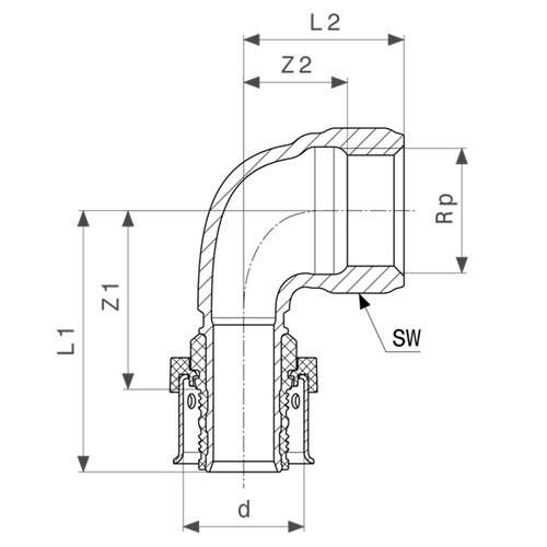 - Omschrijving: Smartpress overgangsbocht 90° Ø20×3/4″mm pers x binnendraad