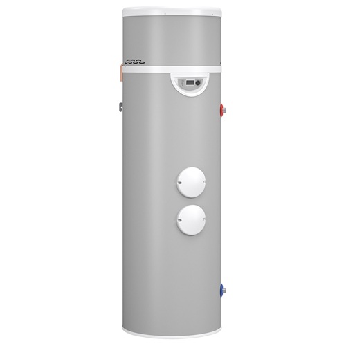 - Boiler met geïntegreerde warmtepomp en droog elektrisch verwarmingselement (leveringsomvang)