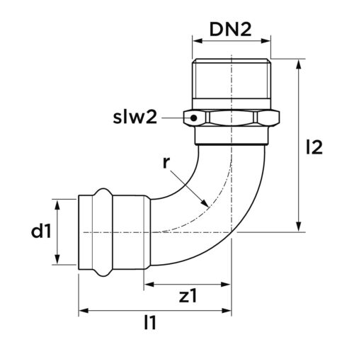 VSH SudoPress Koper overgangsbocht 90° (press x buitendraad