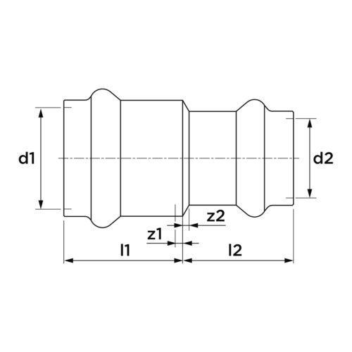 VSH SudoPress Koper verloop sok Ø54x42mm SP5240V fitting met 2 aansluitingen 1-delig, lengte 58mm, recht, uitwendige buisdiameter aansluiting 54mm, nom. diameter aansluiting 1 DN 50, aansluiting 1 koper, uitwendige buisdiameter aansluiting 42mm, aansluiting 1 persmof, nom. diameter aansluiting 2 DN 40